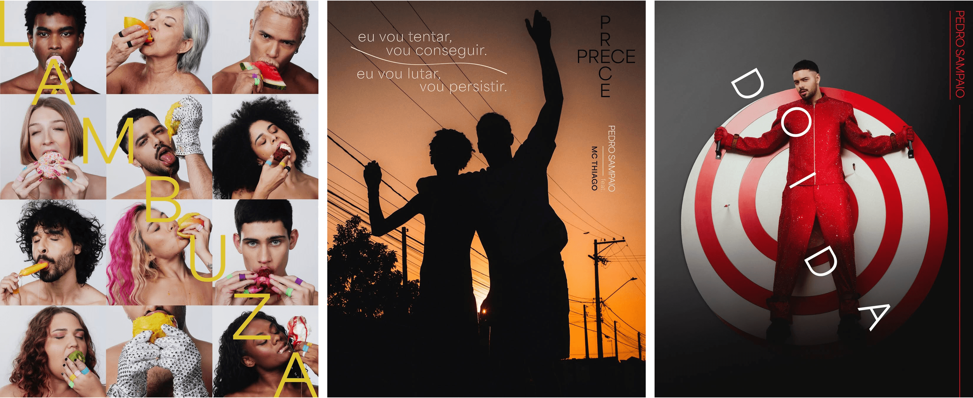 Os pôsteres possuem características minimalistas e que valorizam a foto e a criatividade tipográfica, cada uma possuindo um significado, como por exemplo "Escada do Prédio" formando uma escada, "Quina da Cama" tendo a tipografia na quina do pôster, "Tiro sua Calcinha" em formato triangular de uma calcinha e "Melancia" com formato redondo como se fosse a metade de uma melancia, acompanhada de caroços no rodapé do pôster, e para finalizar, "Prece" sendo escrita em formato de cruz.